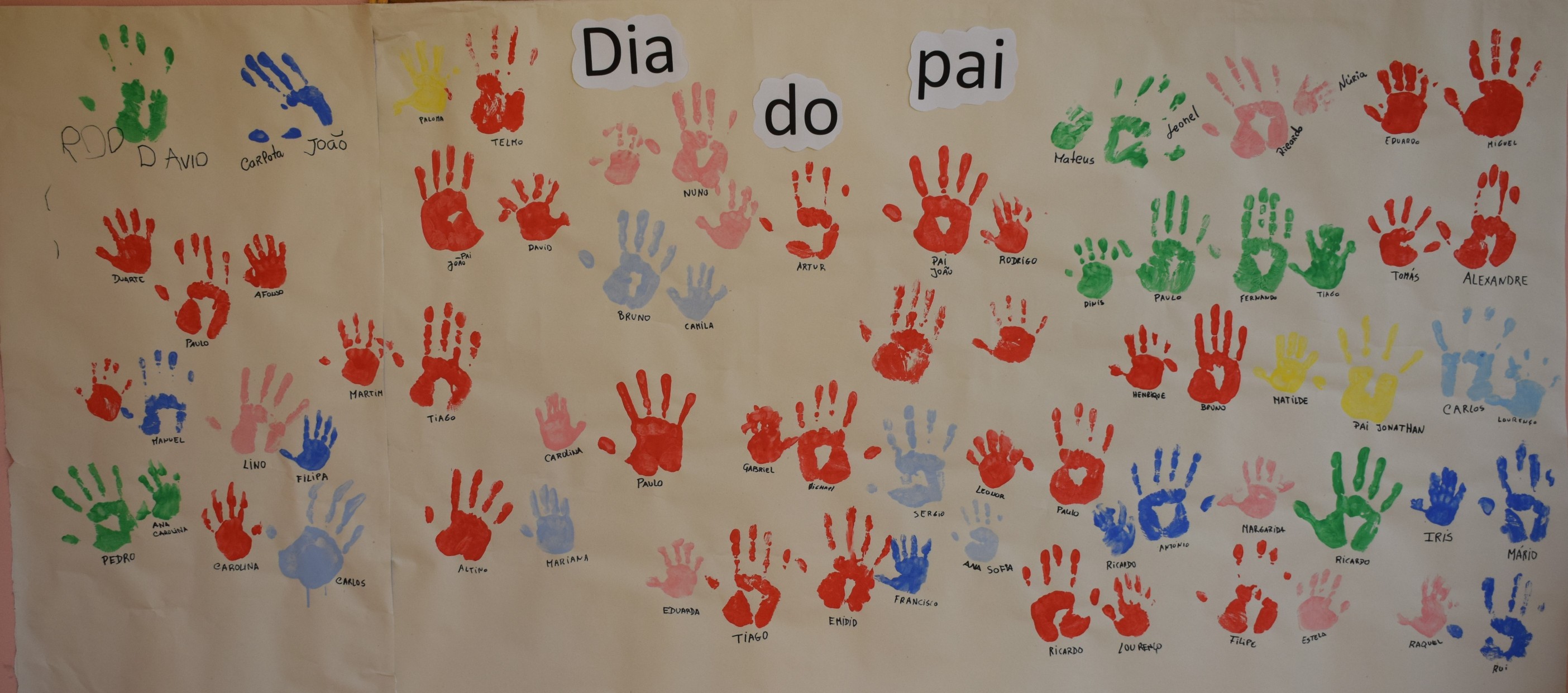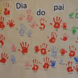 No passado dia 16 de Março comemoramos o dia do Pai, convidamos os pais a virem á escola e em conjunto com os filhos pintarem e decalcarem as mãos... foi muito gratificante ver a alegria das crianças com os pais na escola, momentos de partilha e boa disposição... e ainda tiveram direito a um biscoito com a letra P... Obrigada a todos que participaram!